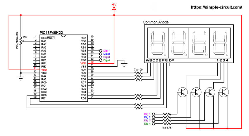 A CA display usually uses PNP transistors, so you have to invert the outputs of #PORTB. This doesn't improve readability, but the operation remains the same.